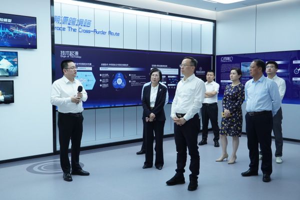 活动结束后,谈文胜一行前往湖南省国程跨境电子商务有限公司实地调研并座谈。公司董事长袁华详细介绍了平台建设进展、功能模块及下一步发展规划。谈文胜指出,平台的成功发布是一次跨界合作的多向奔赴,是突破思维定式的创新实践,更是地质行业转型发展的重要探索和部省携手合作的共同行动。他强调,平台发展具备四大核心优势:依托部省合作基础,国资委下辖企业、开发园区、地方企业三方携手,具有显著的信誉优势;通过流程再造实现降本增效,股服务外贸企业,形成突出的成本优势;作为全国首个基于自主可控区块链的省级跨境平台,具备独特的首创优势;精准对接国家跨境贸易结算各项政策规定,拥有较好的政策优势。