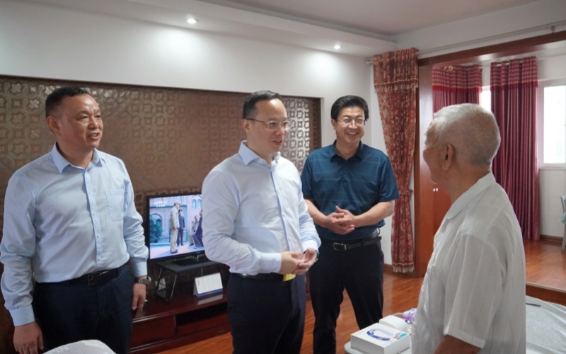 谈文胜“七一”前夕走访慰问老党员